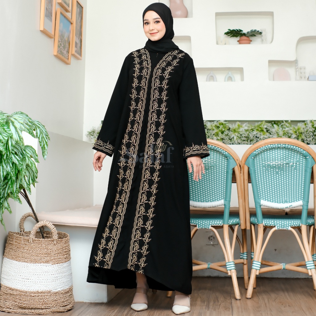 Abaya Gamis Hitam Turkey Bahan Jetblack dress muslim dubai