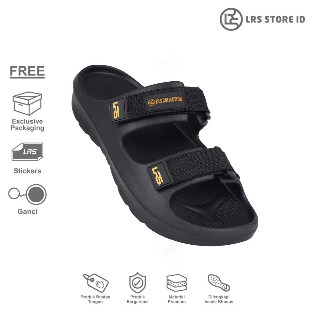 Sandal Pria Arnoud Black & Yellow Sandal Casual Slop Lrs Sandal Pria Selop