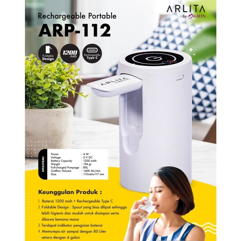 ARLITA Pompa Galon Elektrik Rechargeable - Putih ARP 112