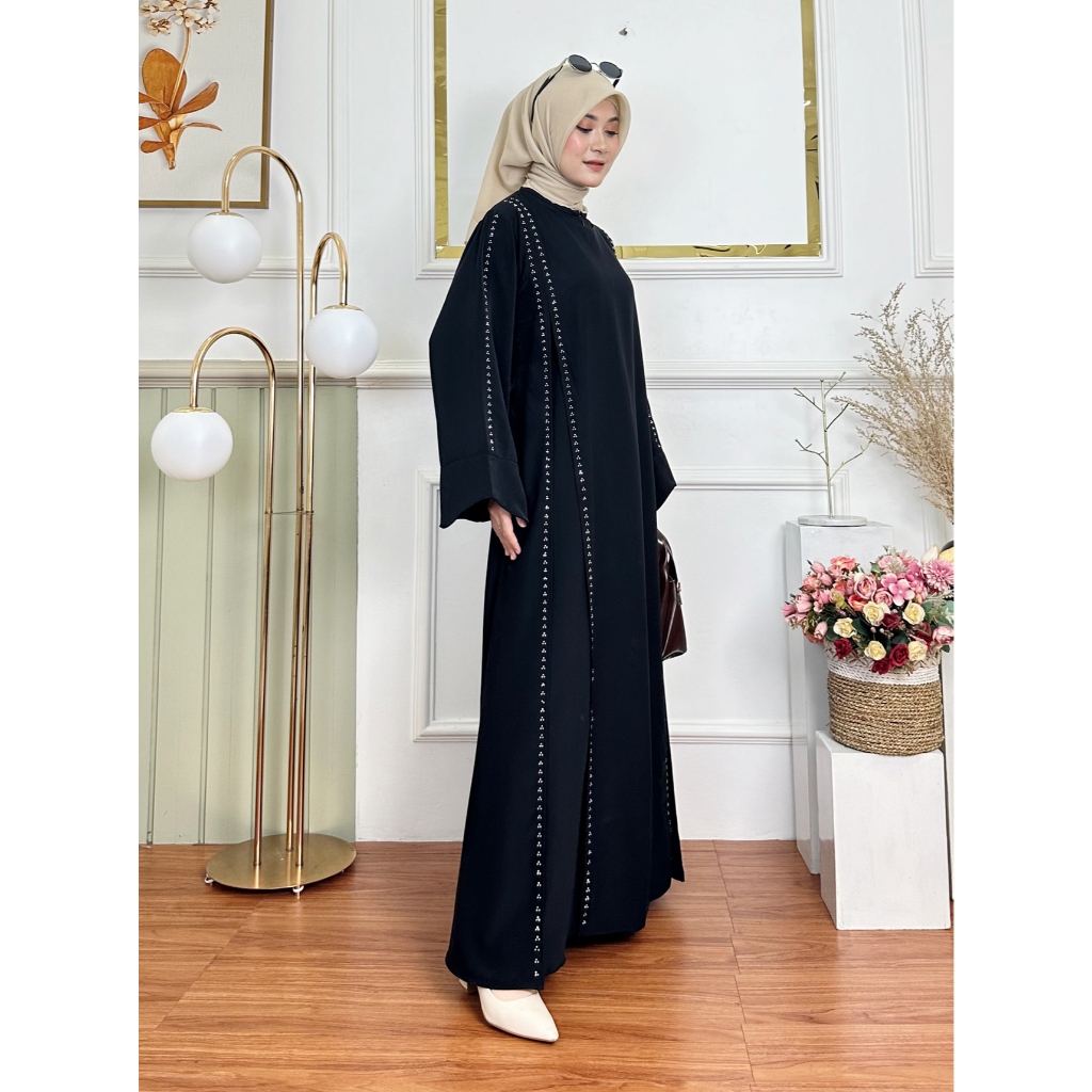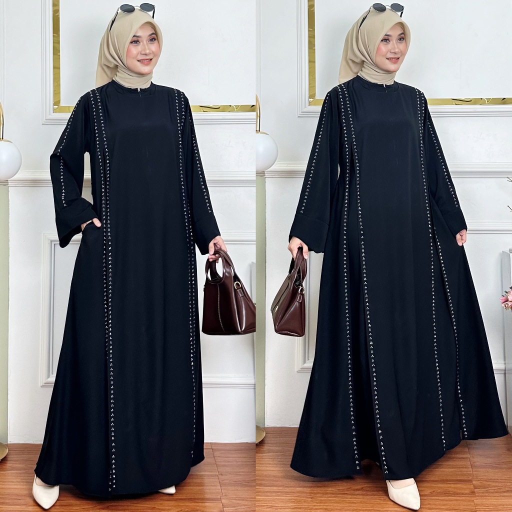 Rania Abaya Gamis Hitam Bahan Anti UV Premium Class Size S M L XL Jumbo Baju Dress Variasi Mutiara