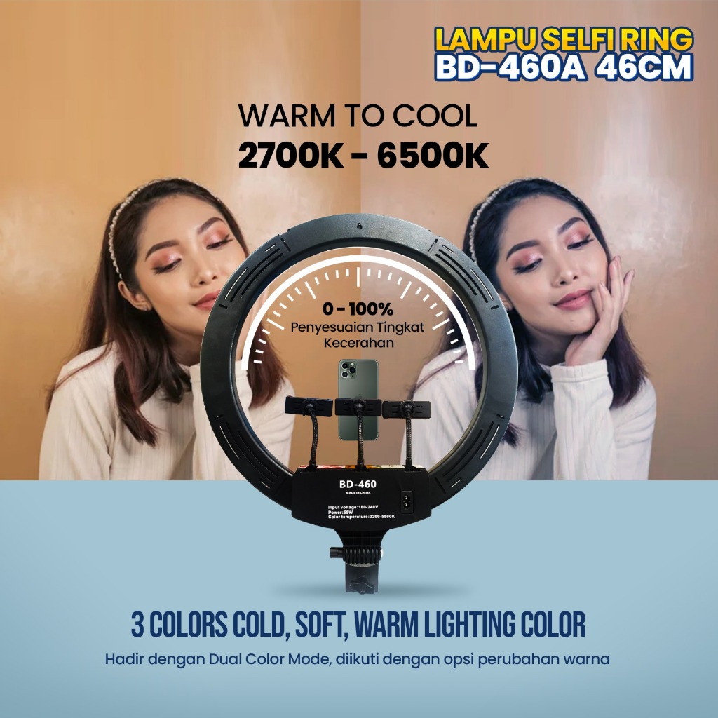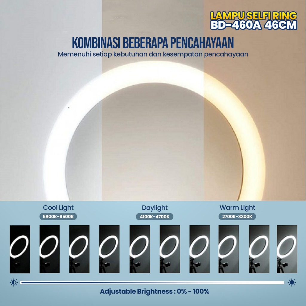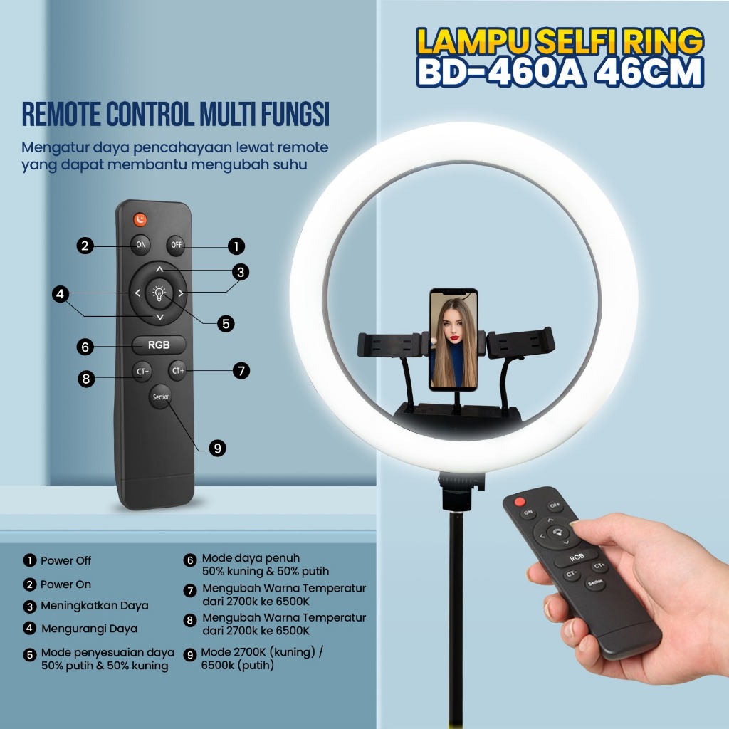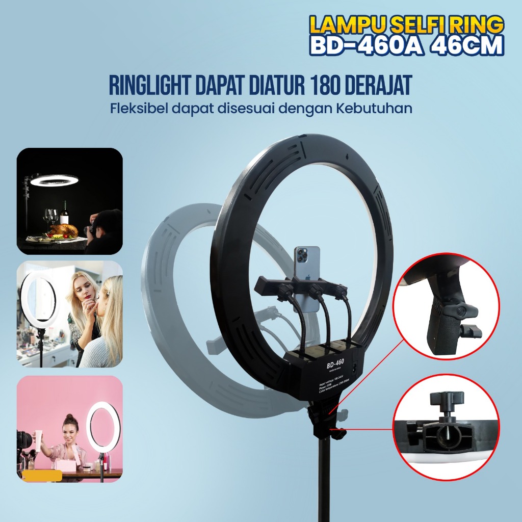 LAMPU SELFIE RING LIGHT BD-460A 46CM UNTUK LIVE KONTEN KREATOR KONTEN PENCAHAYAAN TERANG 18INCH