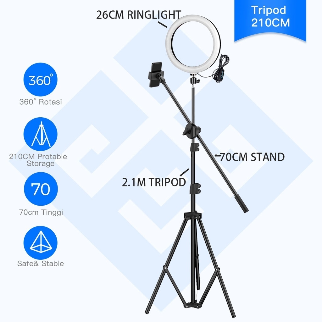 INBEX 26CM Ring Light Kit + 70CMstand holder hp Live Stream Lampu for Selfie / Photography/Live Broadcast / Make Up Vlog