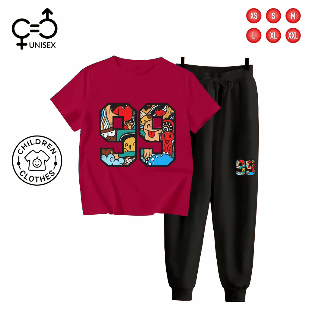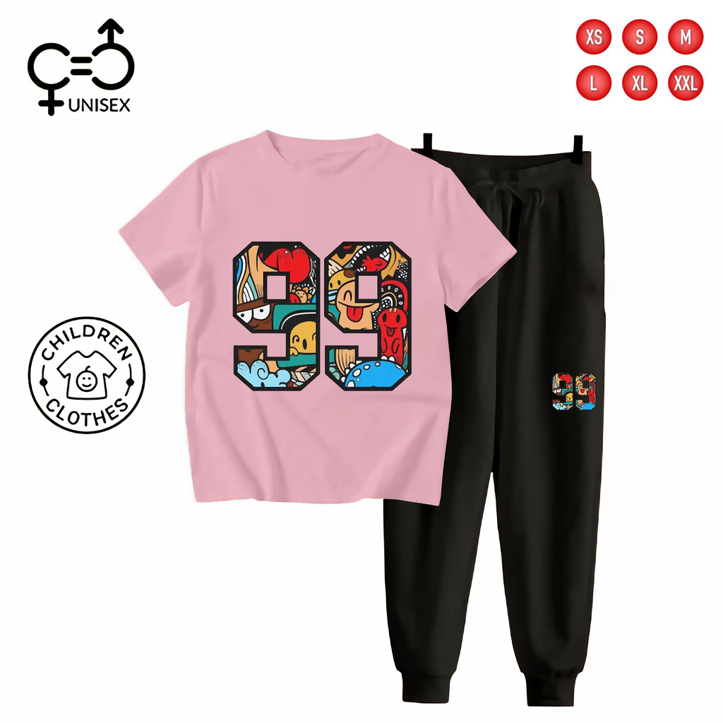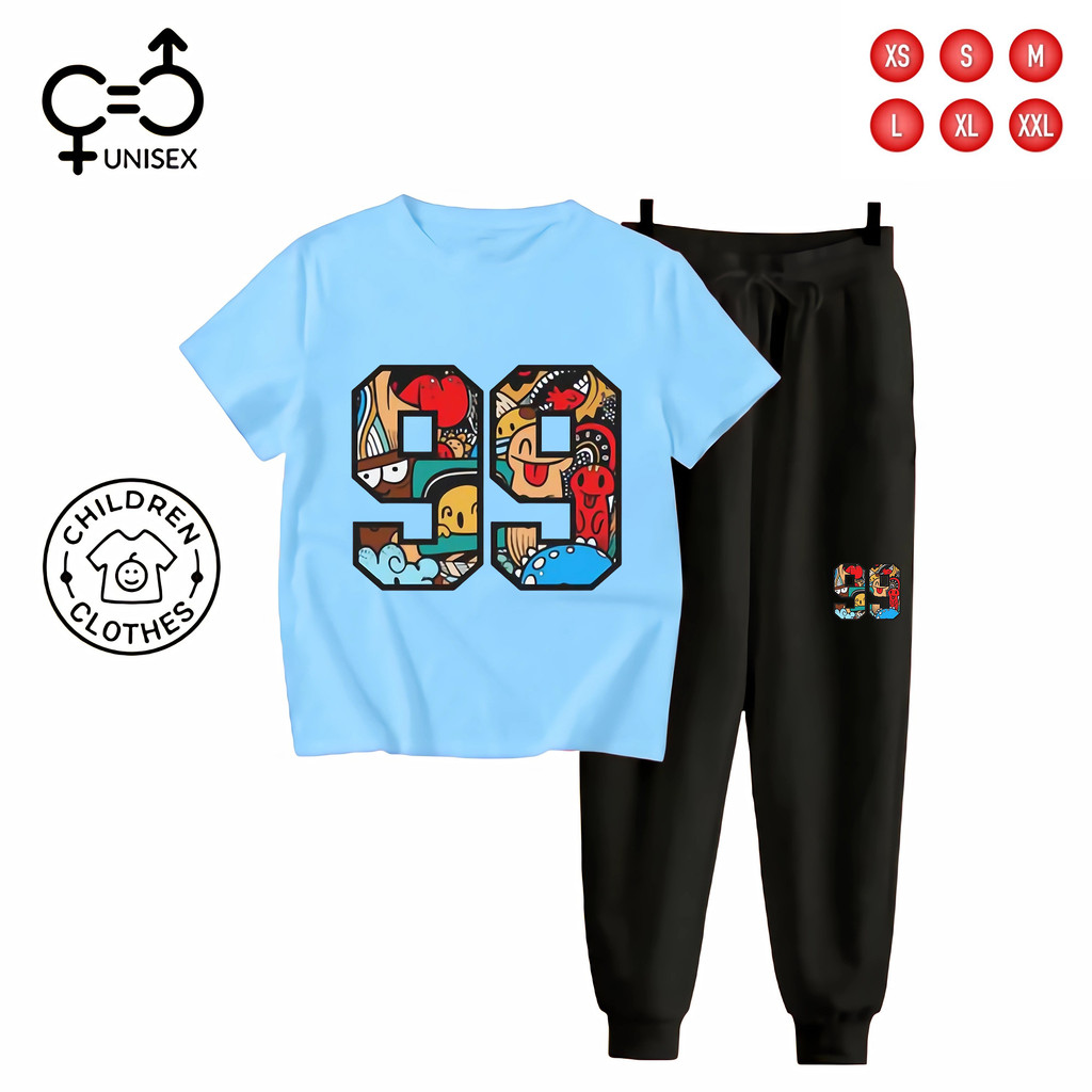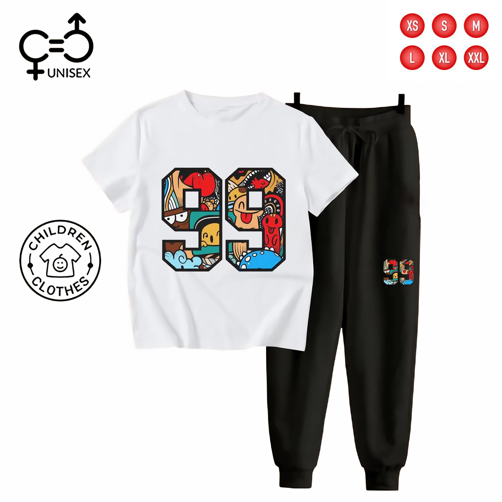 Gc - Setelan Tema Jersey Anak Unisex Kaos + Jogger Hitam - 99