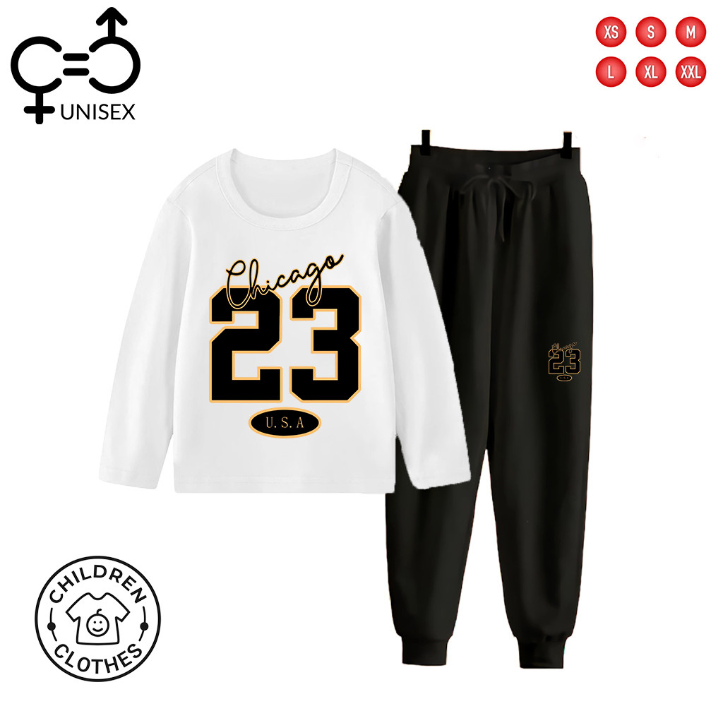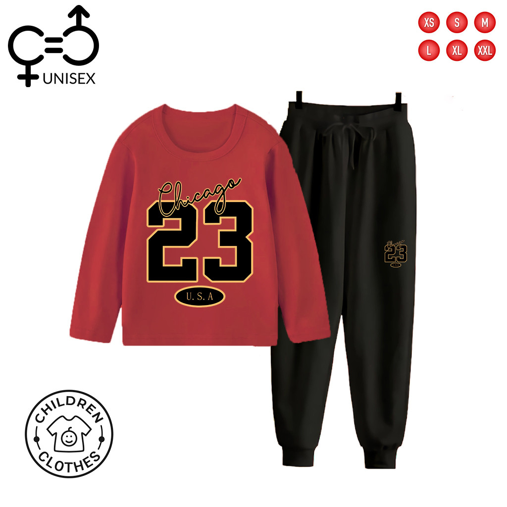 Gc - Setelan Tema Jersey Anak Unisex Lengan Panjang + Jogger Hitam - Chicago 23