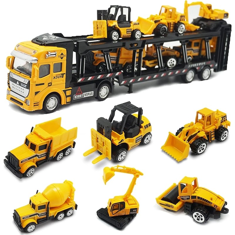 【Free 6 Mobil Car】Pull Back Paduan Kendaraan Truk Container Pengangkut diecast metal car trucks Mobil Mainan Mobilan Bul