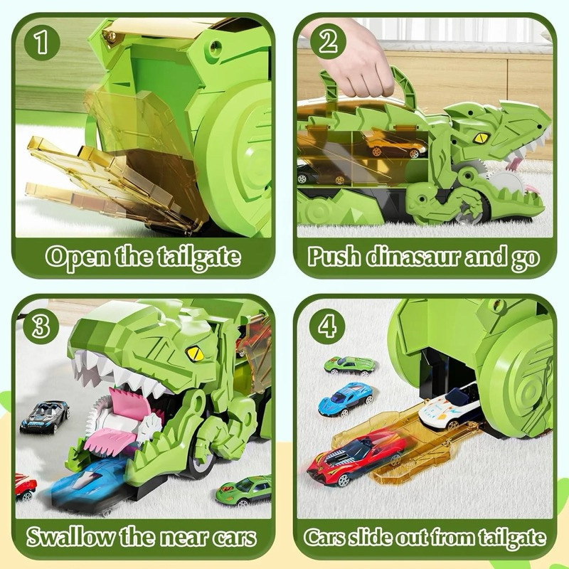 WANGAO [Free 6 Mobil] Mobil Truk Mainan Deformed Dinosaur Track Truck Mobil Dino Deformasi Mainan