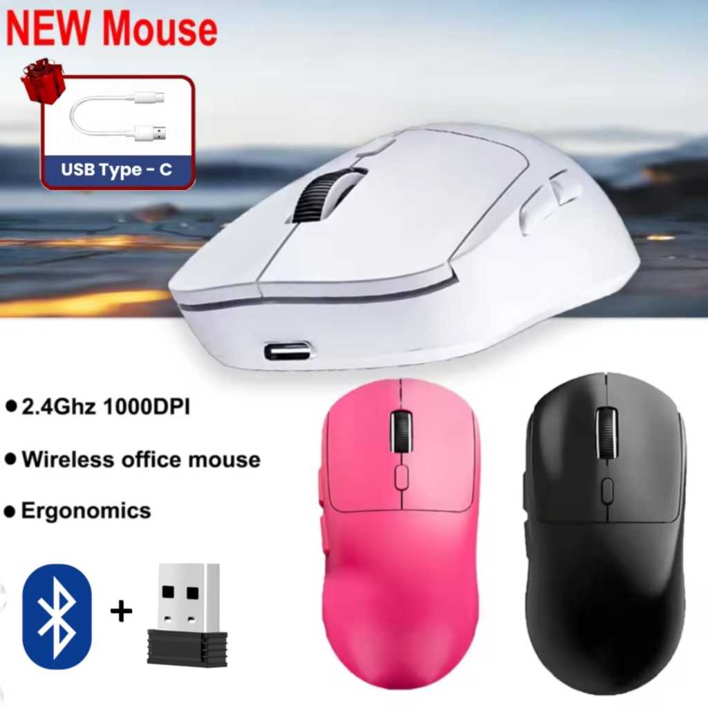 M-348 - MOUSE BLUETOOTH & WIRELESS SILENT CLICK DUAL MODE RECHARGERABLE DI CAS ULANG BATERAI TYPE C UNTUK LAPTOP KOMPUTER PC ANDROID IOS TABLET MACBOOK