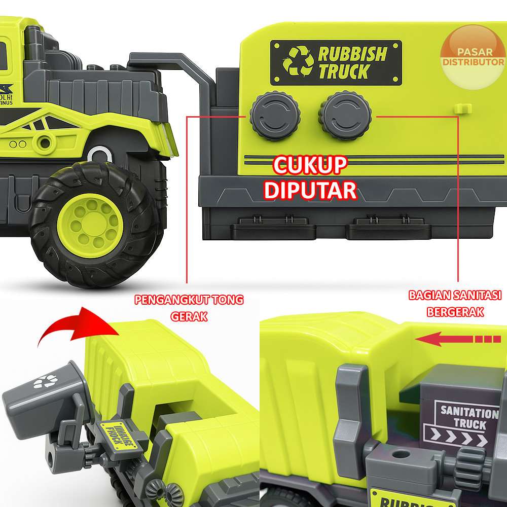 Pasar Distributor D-4414/H2108-4 RUBBISH TRUCK MODEL CAR Mainan Truk Sampah Anak Friction Edukasi