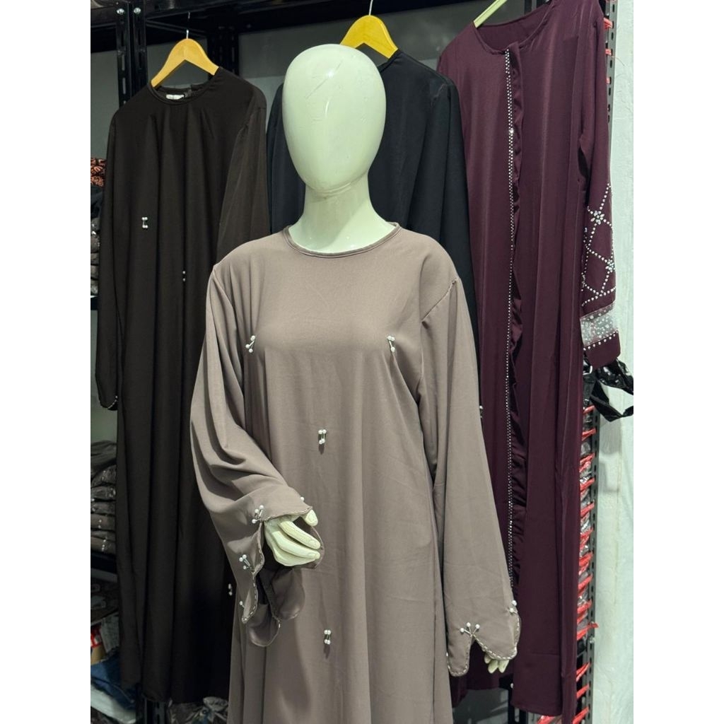 Yasmen Abaya Dress Bahan Marbela Anti Uv Aplikasi Payet Mutiara Abaya Umroh Simpel Mewah Elegan
