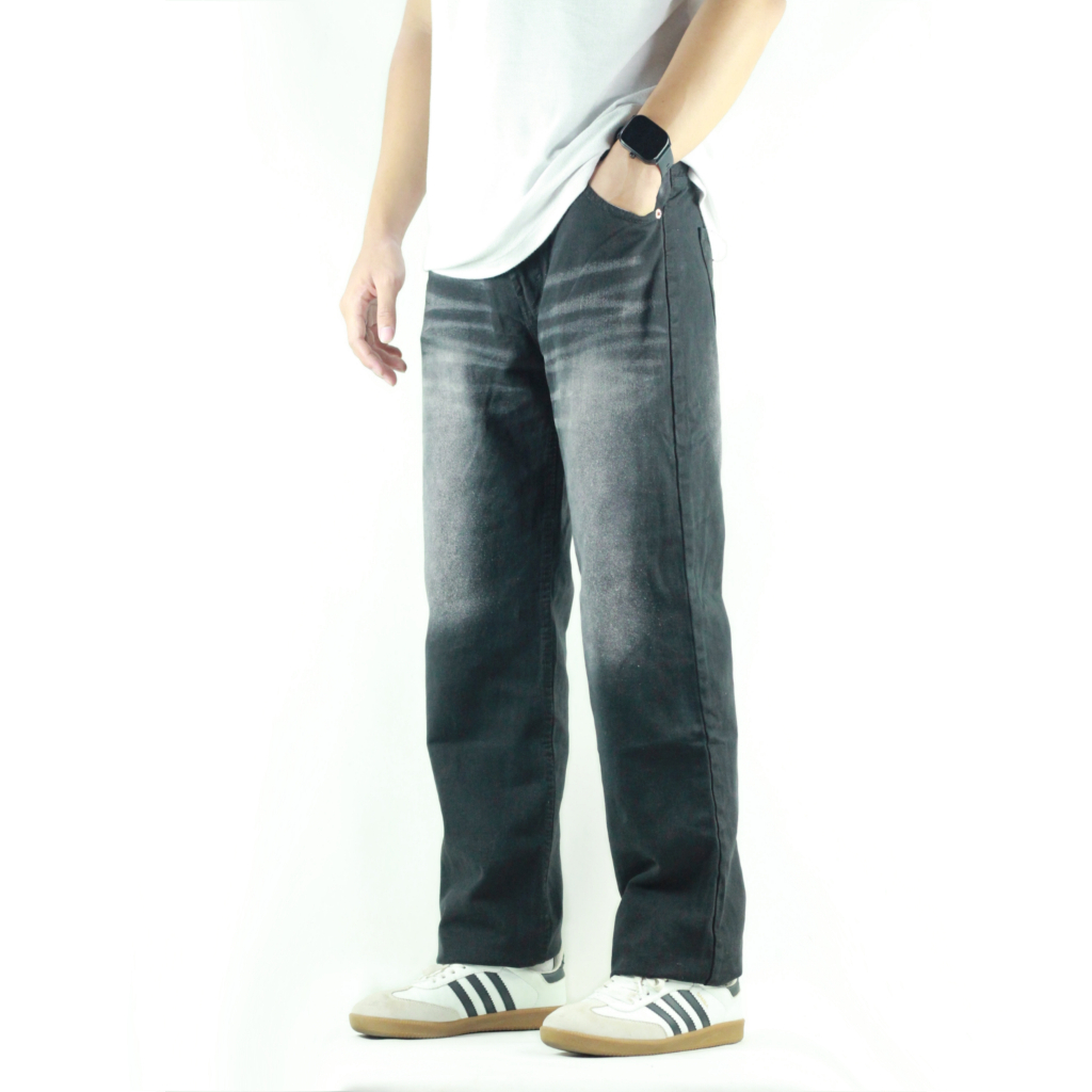 Celana Jeans Prewash Denim Black Jazz Whisker Standar Basic Reguler Pria 28 44