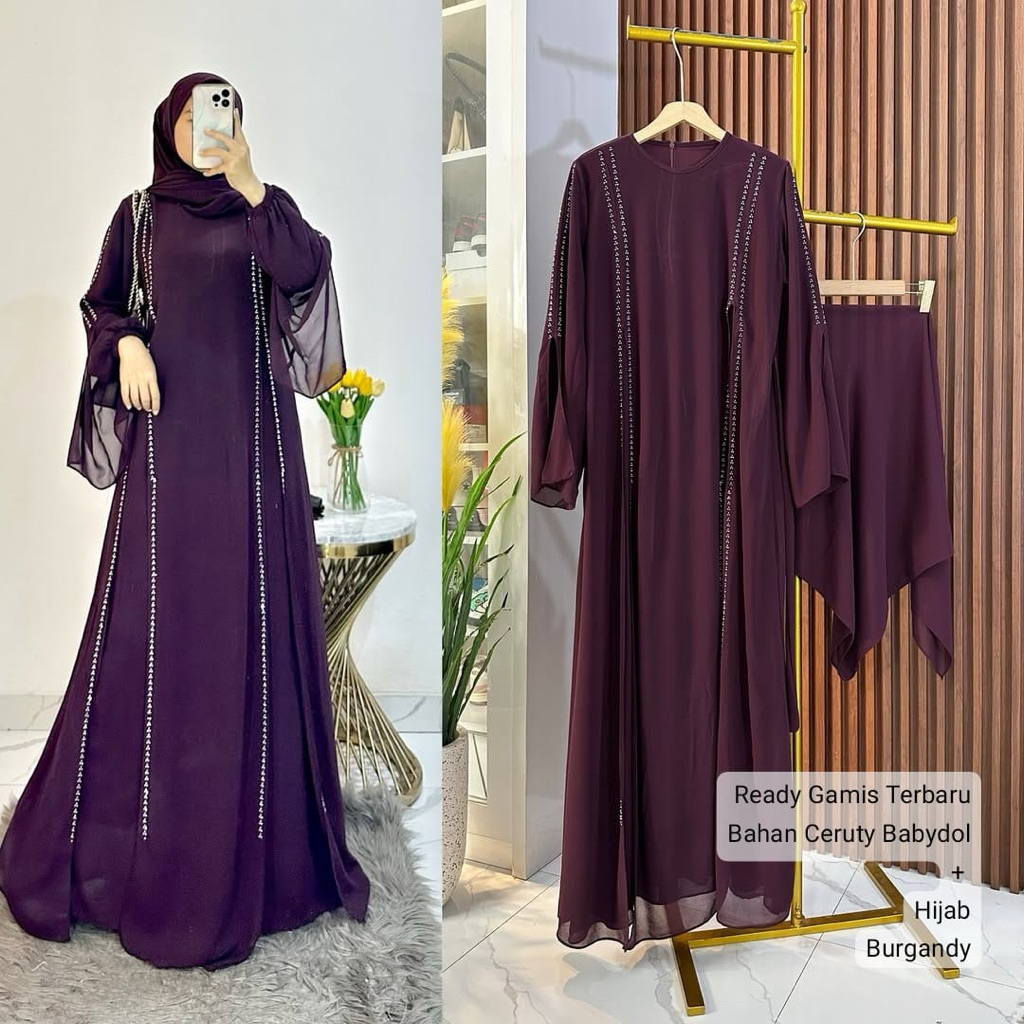Luna Abaya Bahan Ceruty Babydoll Full Furing + Hijab Variasi Swarovski Abaya Wanita Muslimah