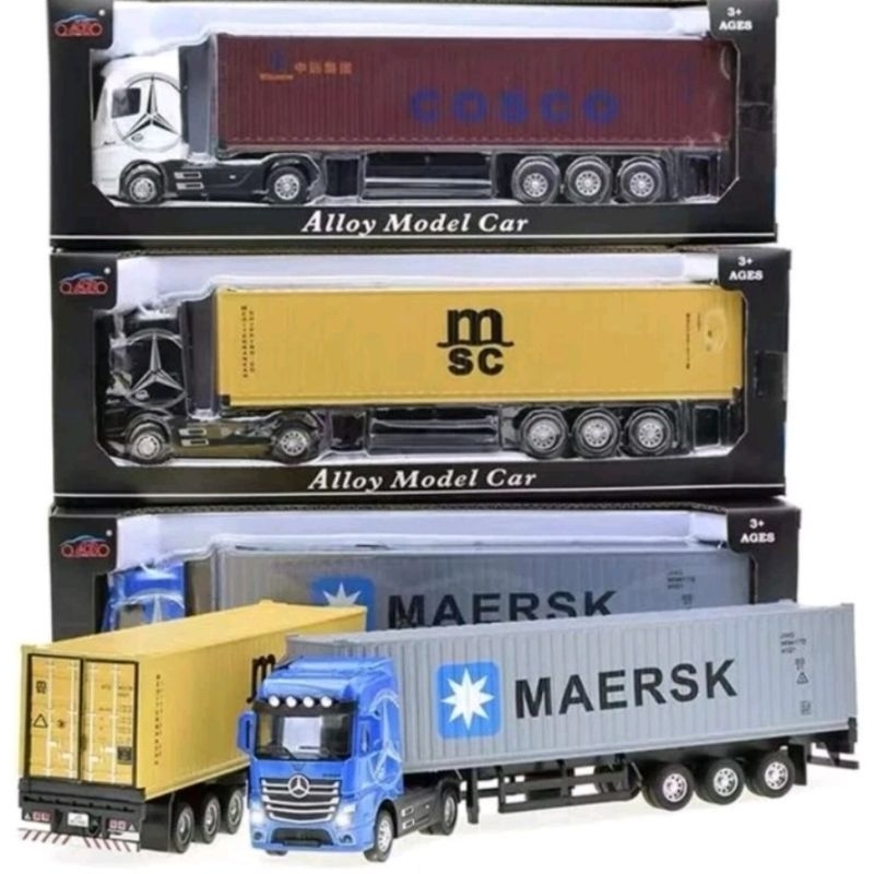 Diecast Container Mercedes Benz Miniatur Truk Traktor Benz Actros Tractor Kontainer Truck Box Dengan Suara + Lampu