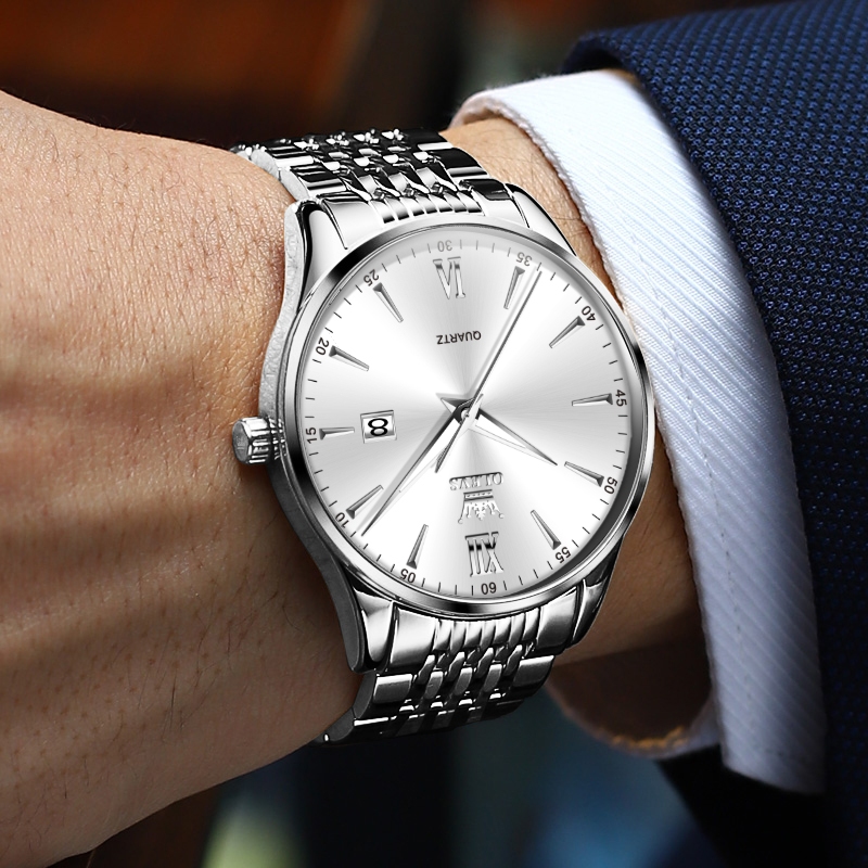 Olevs Jam Tangan Pria Original Anti Air Cowok Kalender Arloji Jam Tangan Pria Rantai Stainless Steel Luminous Analog Bis