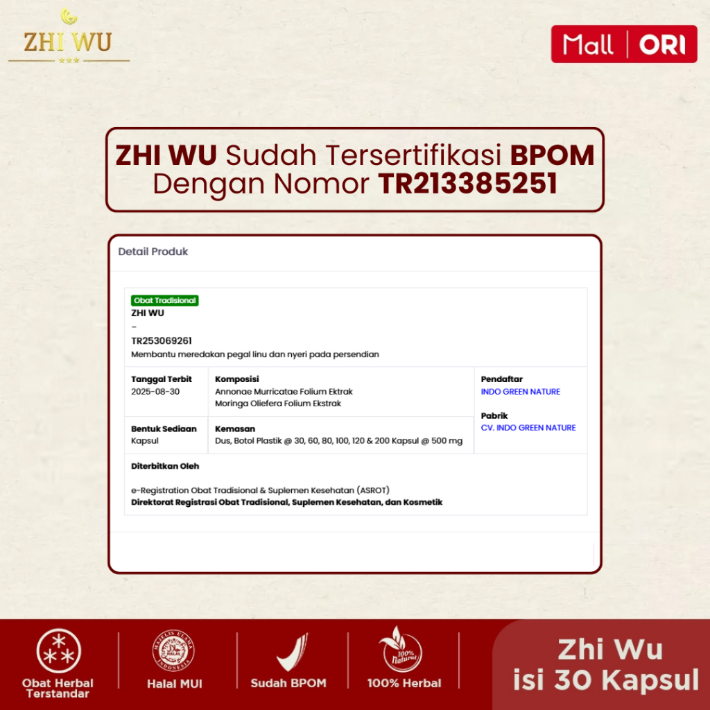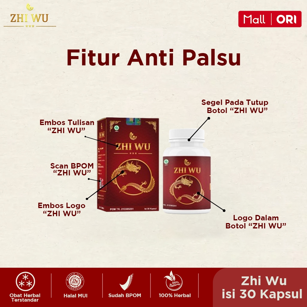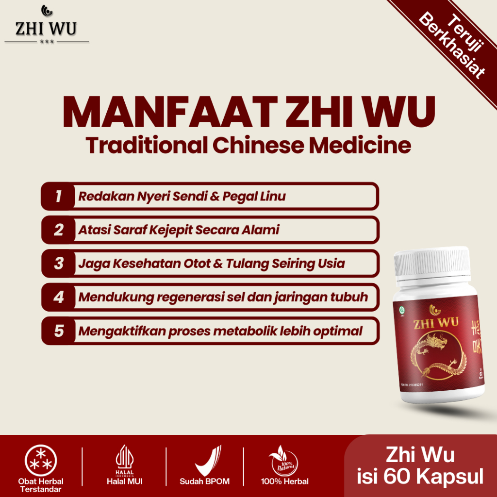ZHI WU - Paket 3 Botol Isi 30 Kapsul Obat Tradisional Cina Saraf Kejepit & Asam Urat