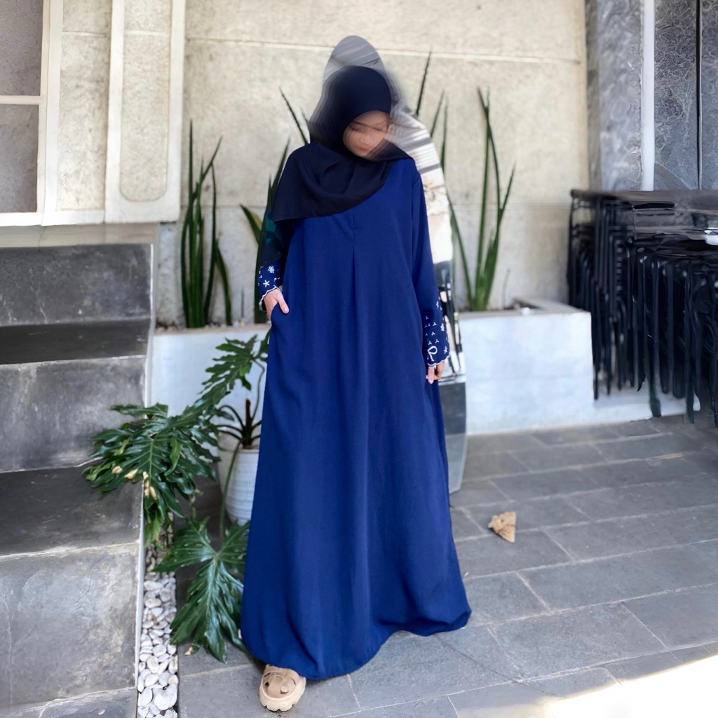Gamis Abaya Turkey Basic Bordir Coquette Bagian Tangan Bahan Woolpeach Lux