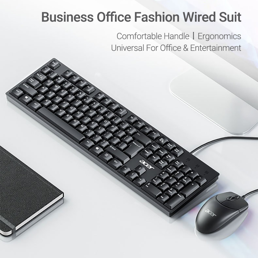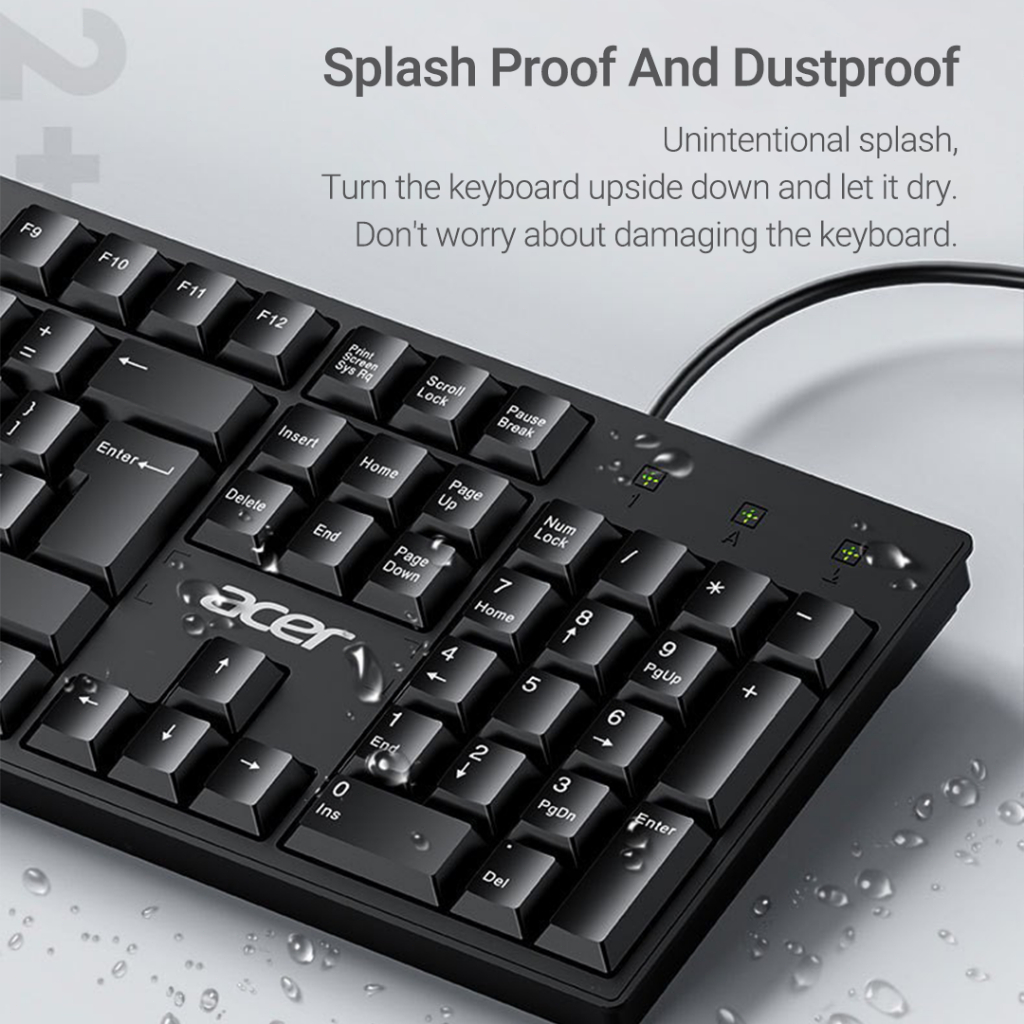 Acer Keyboard Kabel K-212B Kunci 104 Ukuran Penuh Tahan Tumpahan & Debu Wired Keyboard Laptop
