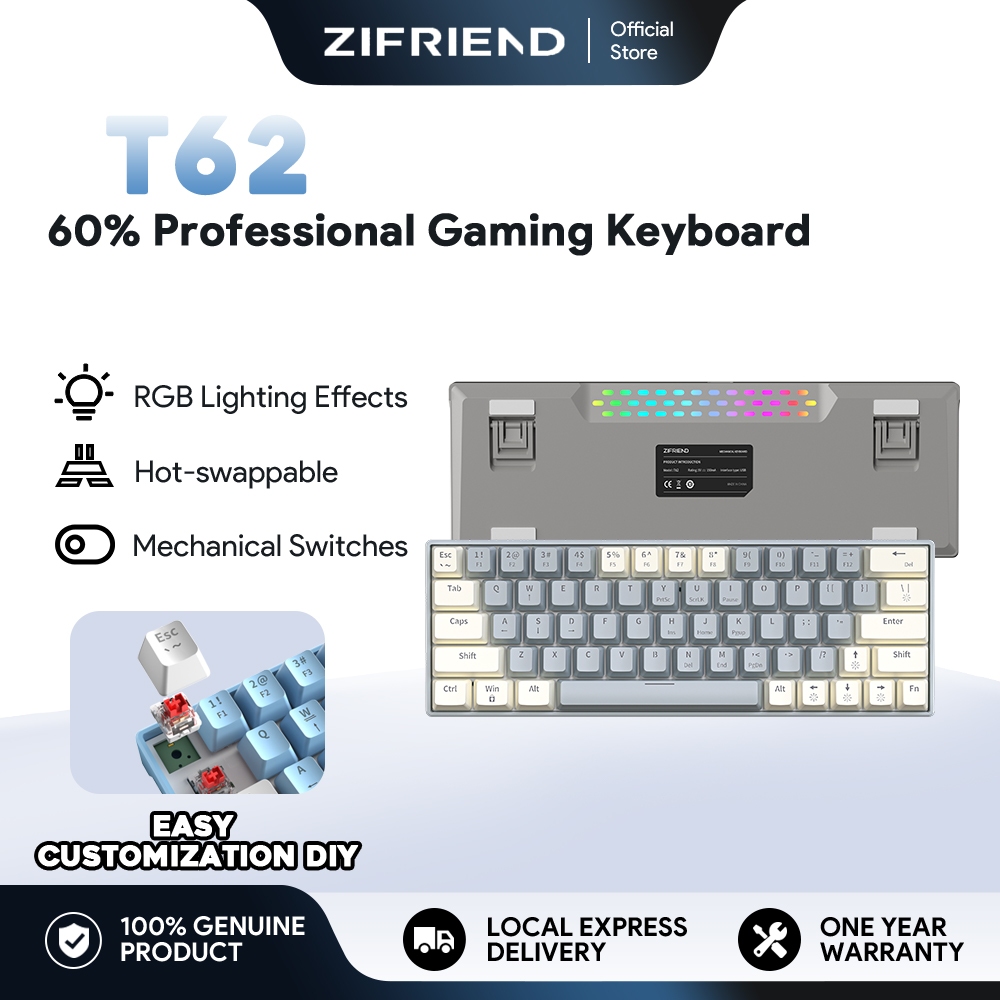 ZIFRIEND T62 Mechanical Keyboard 60% Layout RGB Backlit Gaming keyboard Compatible With Both Laptops And Desktops