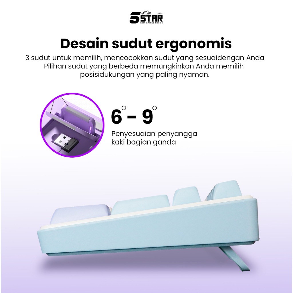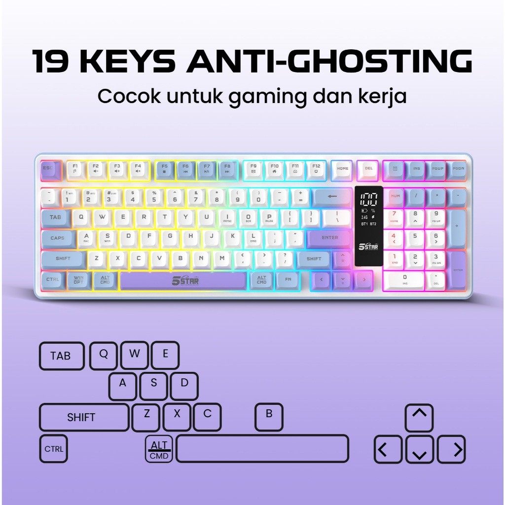 5Star Keyboard Gaming Wireless Silent klik Untuk gaming malam Bluetooth Tabel PC Laptop HP GKW700