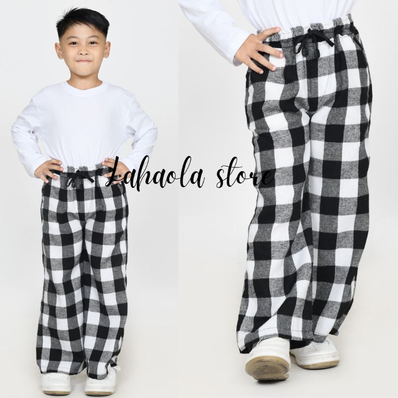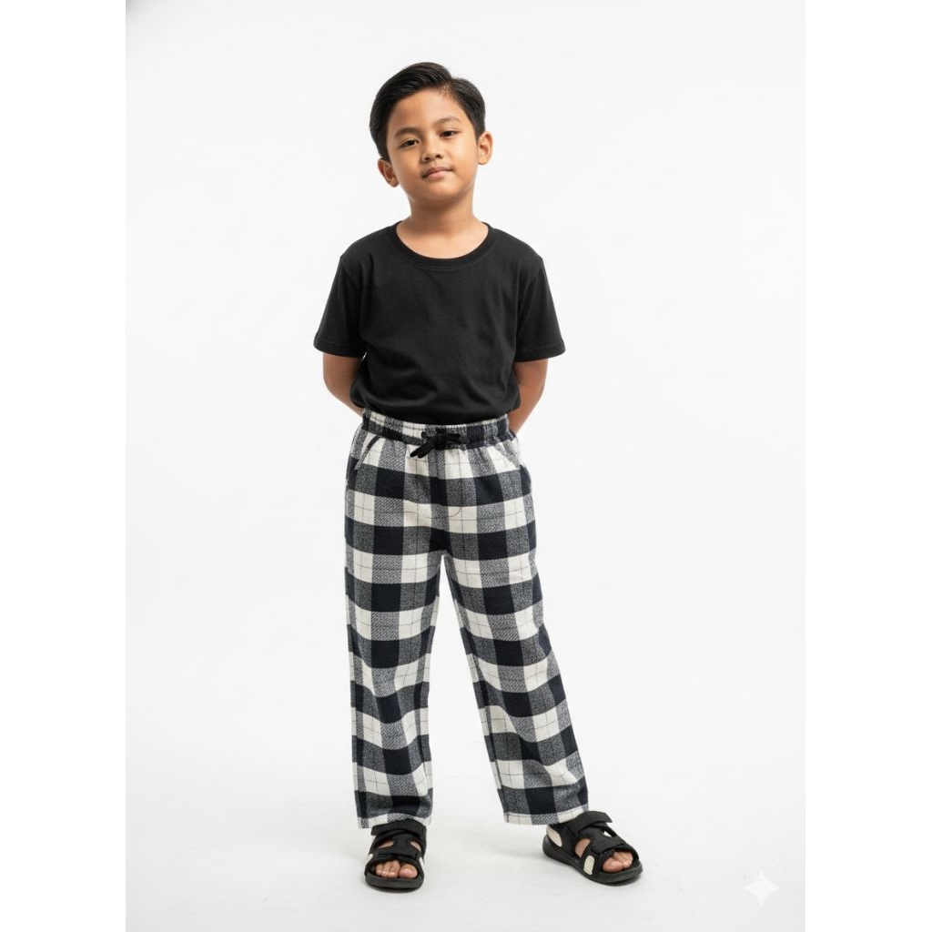 Celana Panjang Tartan Flanel Anak 1-10 Tahun Unisex Longgar Kotak - Kotak
