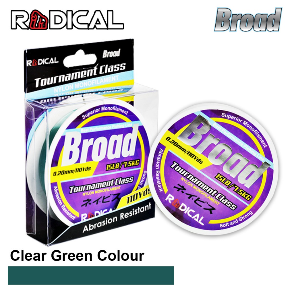 Radical Senar Pancing Monofilament Broad 100M Clear Green Monofilament Fast Sinking Extra Strong Tournament Class