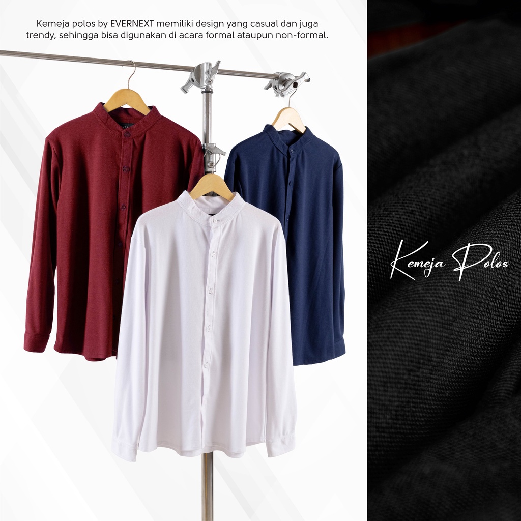 Evernext - Kemeja Polos Pria Baju Kemeja Koko Pria Kemeja Lengan Panjang Pria Kemeja Casual Premium