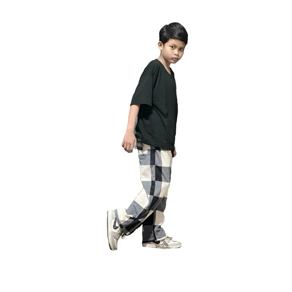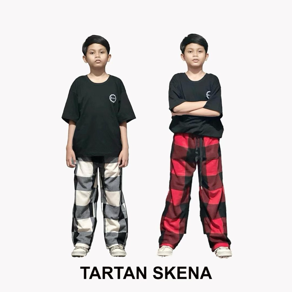 Too- Celana Panjang Tartan Anak Motif Kotak Plaid Bahan Fleece Polar