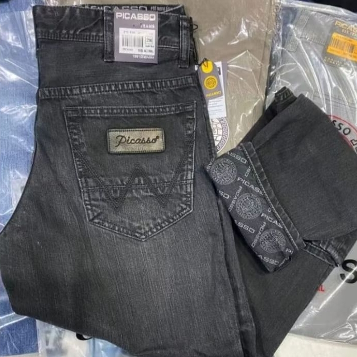 [PICASSO W Tidak Karet/Non Stretch] Celana Jeans Picasso Denim Panjang Pria/Laki-Laki Cowok Slim-Fit/Regular Gratis Tote
