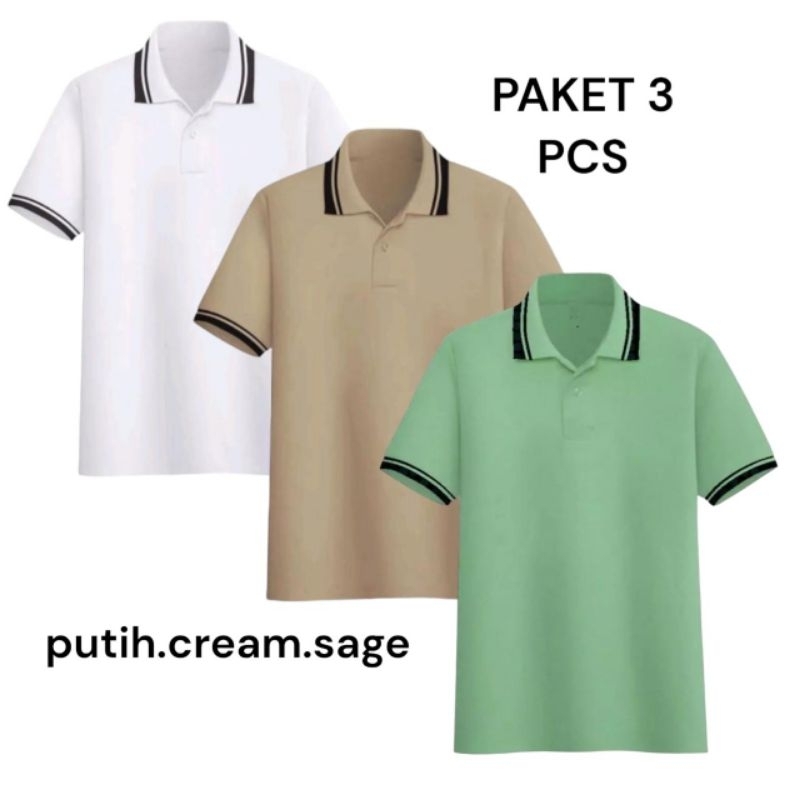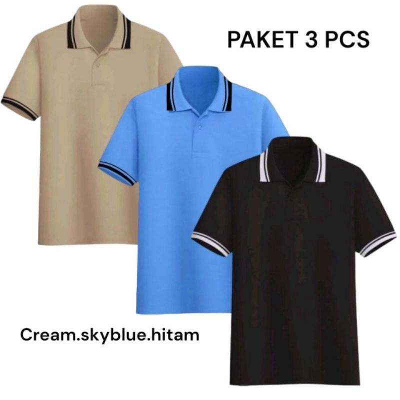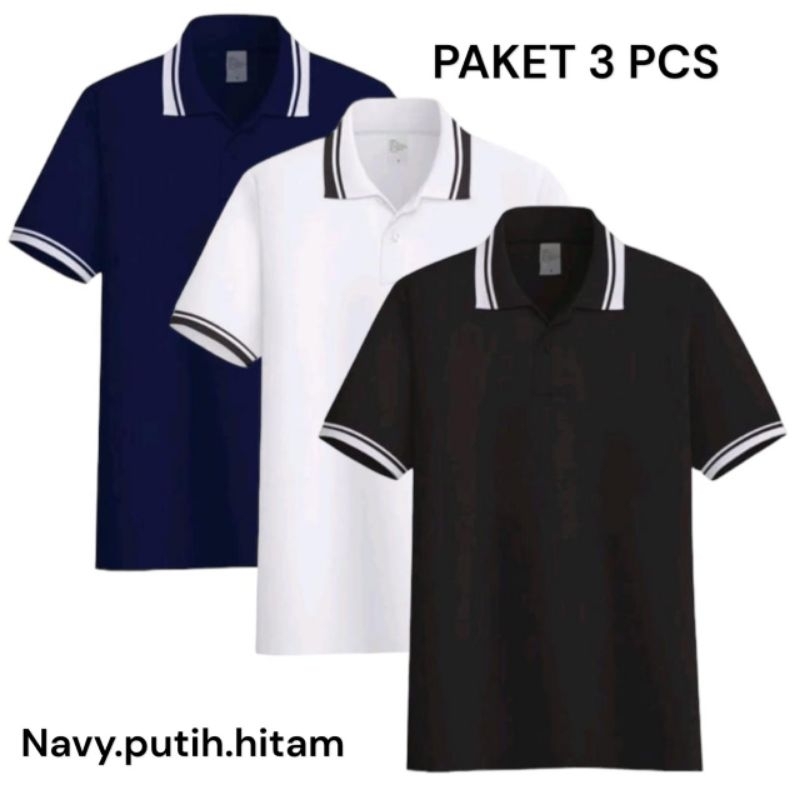 Paket 3 Pcs/ Kaos Polo Premium/ Kaos Kerah Stripe/Lengan Pendek
