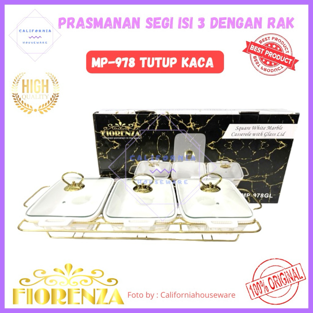 Prasmanan Set Segi Isi 3 + Tutup + Rak Lgm 978 Gl Dan Mp 978 Gl/ Prasmanan Keramik Fiorenza / Fiorenza Prasmanan Segi 3P