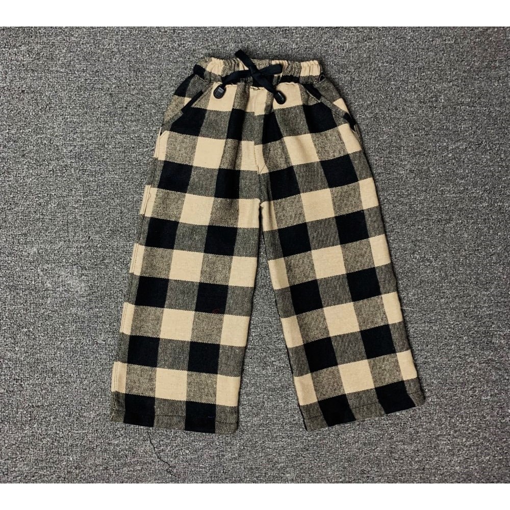 Celana Panjang Tartan Flanel Anak 1-13 Tahun Unisex Longgar Kotak -