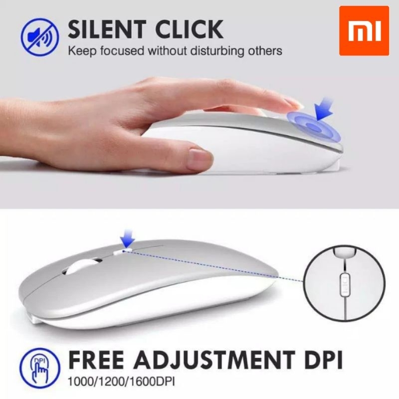 MOUSE XIAOMI BLUETOOTH WIRELESS RECHARGER SILENT KLIK BATERAI ISI ULANG MI