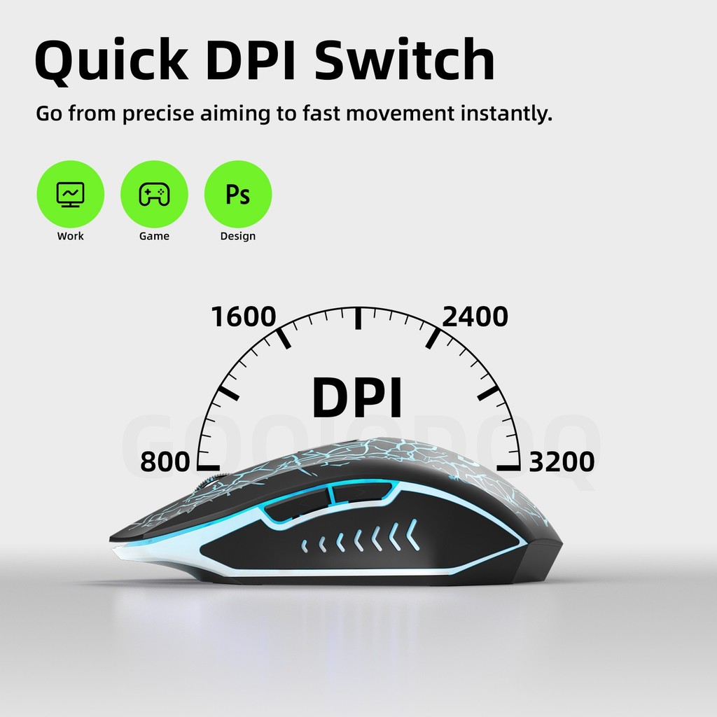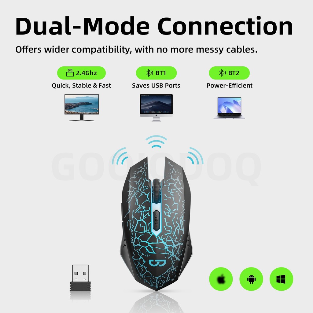 GOOJODOQ WIRELESS/WIRED DUAL-MODE COLORFUL CRACKED GLOWING MOUSE FOUR DPI SETTINGS ANTI-INTERFERENCE MAGNETIC RING