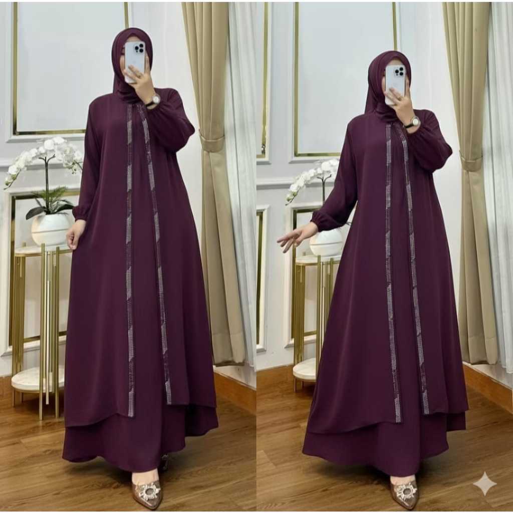Sabyan Dress Gamis Abaya Bahan Crinkle Airflow Premium Gade A Mix Payet Swarovski Mewah Elegan Manis