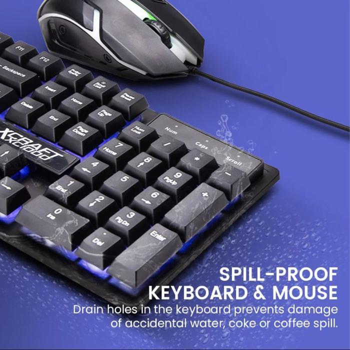 Alcatroz XC-1000 Spill Proof Gaming Keyboard + Mouse Combo 9 Backlight - BLACK