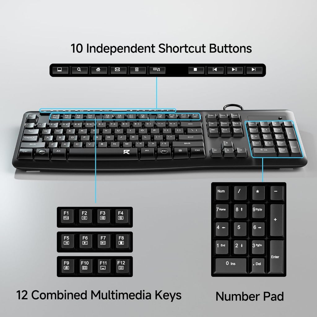 Redragon BK-7543/BK-7366 Silent Wired Office Keyboard with Ergonomic adjustable feet Pad Spill-Resistant