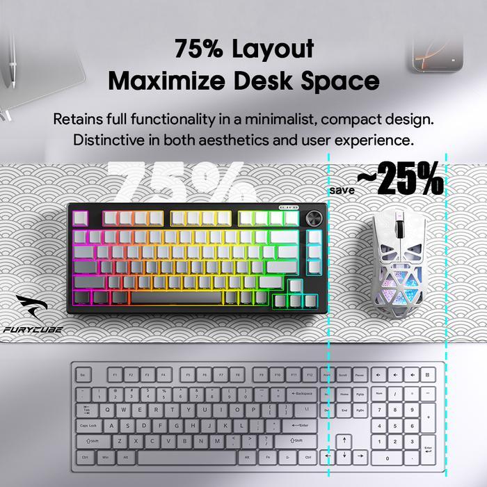 FURYCUBE IP75 / IP-75 Membrane Keyboard 75% Layout Knob RGB Mechanical Feel Keyboard Control Office & Gaming Keyboard