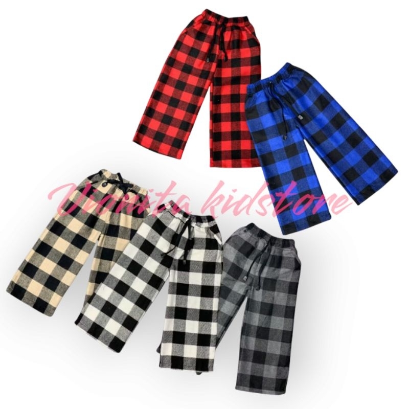 Celana Panjang Anak Kotak Flanel Unisex Usia 1-12 Tahun – Celana Tidur / Santai Motif Kotak