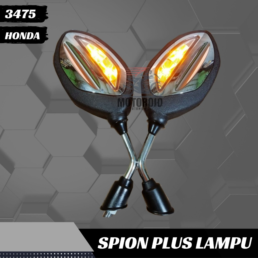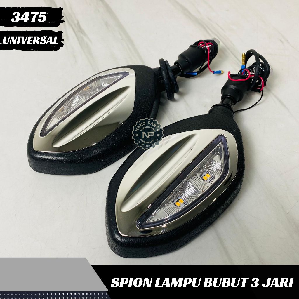 Spion Lampu Bubut 3 Jari Tangkai Pendek Sen Running Sein Chrome Silver Model Beat Bisa H Y Universal