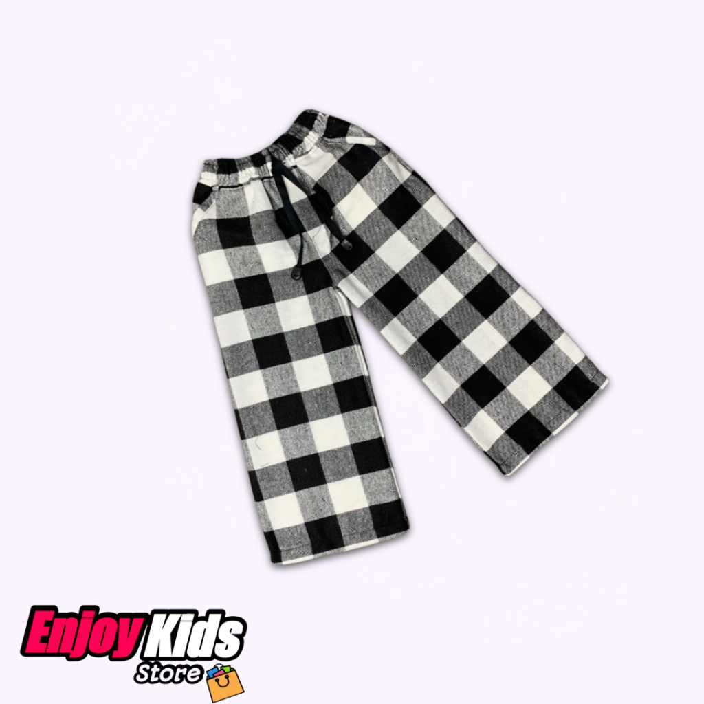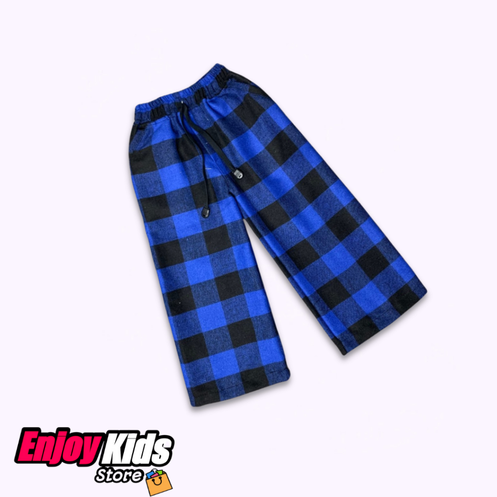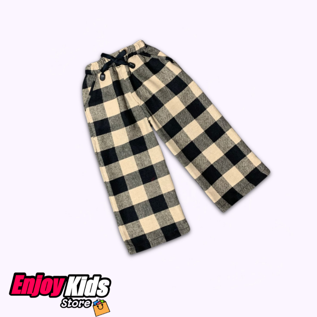 Celana Panjang Flanel Kotak-Kotak Anak Laki-Laki Perempuan 1-12 Tahun Katun Flanel Unisex