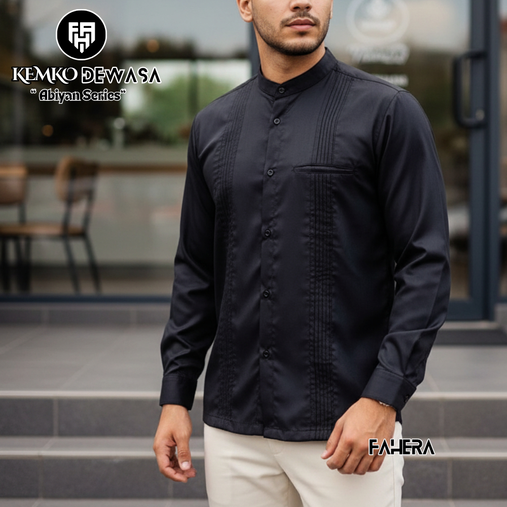 Baju koko pria-Kemeja Koko Lengan Panjang Motif Polos Bahan Toyobo Size M L XL XXL XXXL