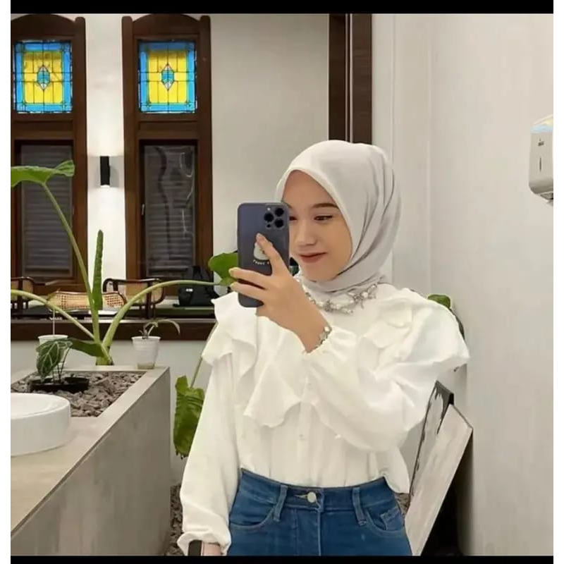 Nafa Blouse Atasan Wanita - Baju Kancinguffle Polos Cringke Rafella - Atasan Korean Style