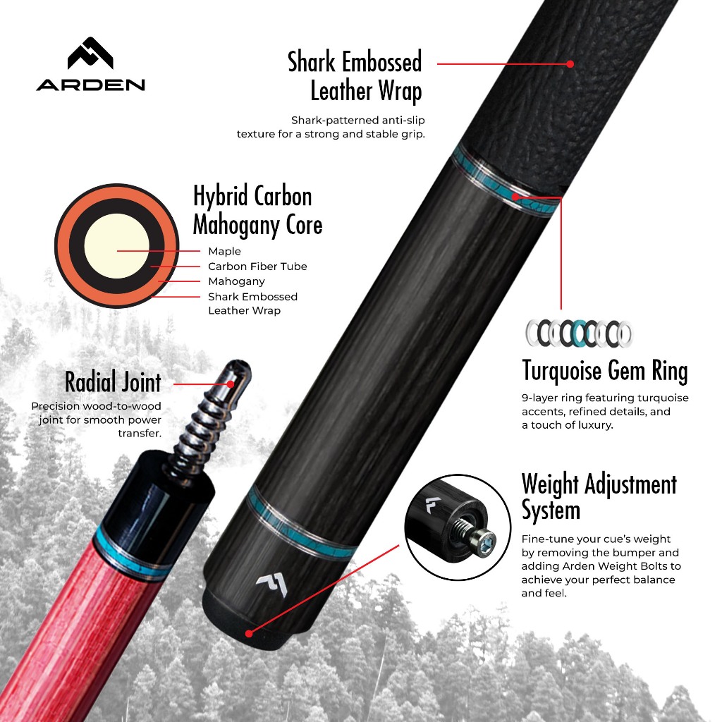 Stick Billiard Arden Mori - Stick High-End Inlay Turquoise Low Deflection | Shaft Maple Infused / Carbon