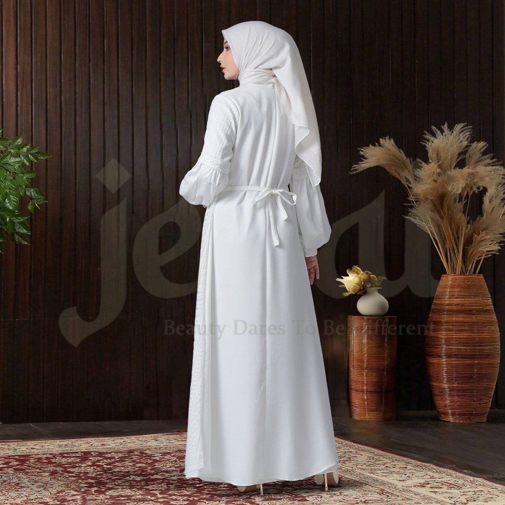 JENAI Gamis Brukat Putih Renda Motif Mewah Dan Elegan Kekinian Terbaru
