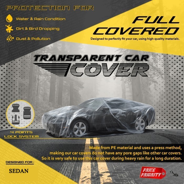 OneWay Sarung Penutup Mobil Plastik Body Cover Plastik Transparan TEBAL Sedan City, Vios, Civic, Camry Corolla Accord An
