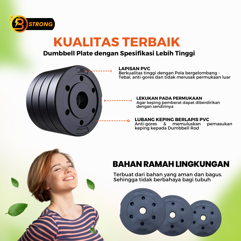 B-Strong Bs-20 Adjustable Dumbbell Set 20Kg - 4-In-1 Barbell Kettlebell Push-Up Alat Fitness Gym