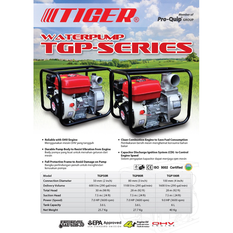 Pompa Alkon 3” 3 Dim Bensin / Pompa Sawah 3 Dim Tiger Tgp 80 Mesin 7 Hp