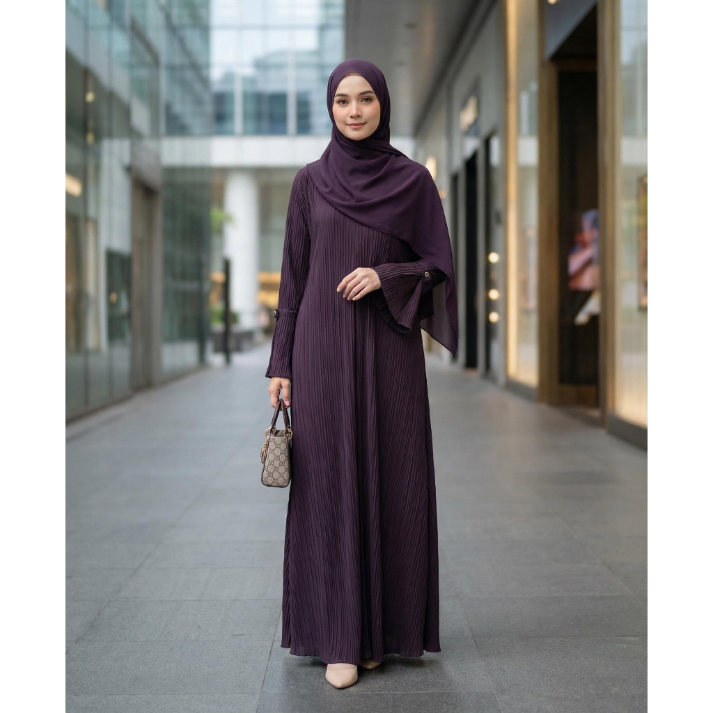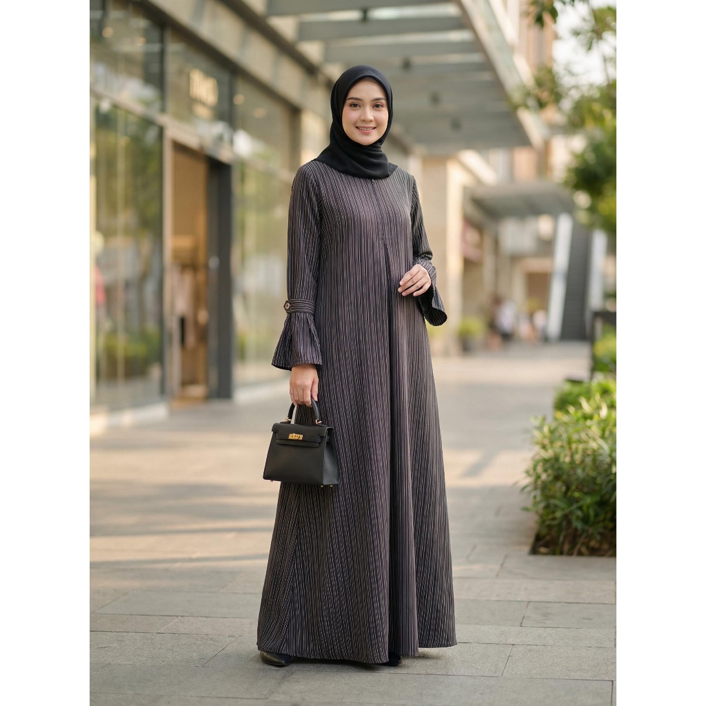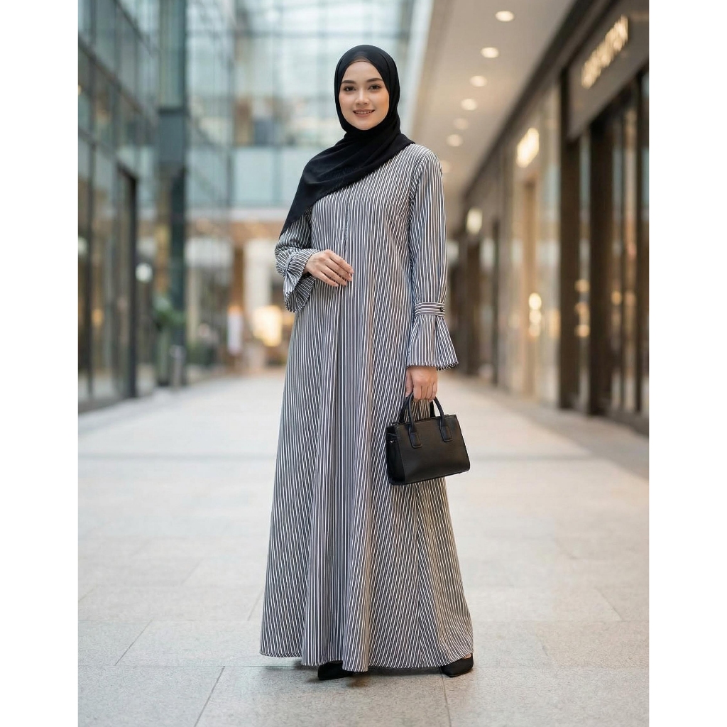 Sofia Dress Baju Gamis Muslim Wanita Salur Polos Size M-L XL-3L XXL-XXXL Bahan Condru Tekstur Jatuh