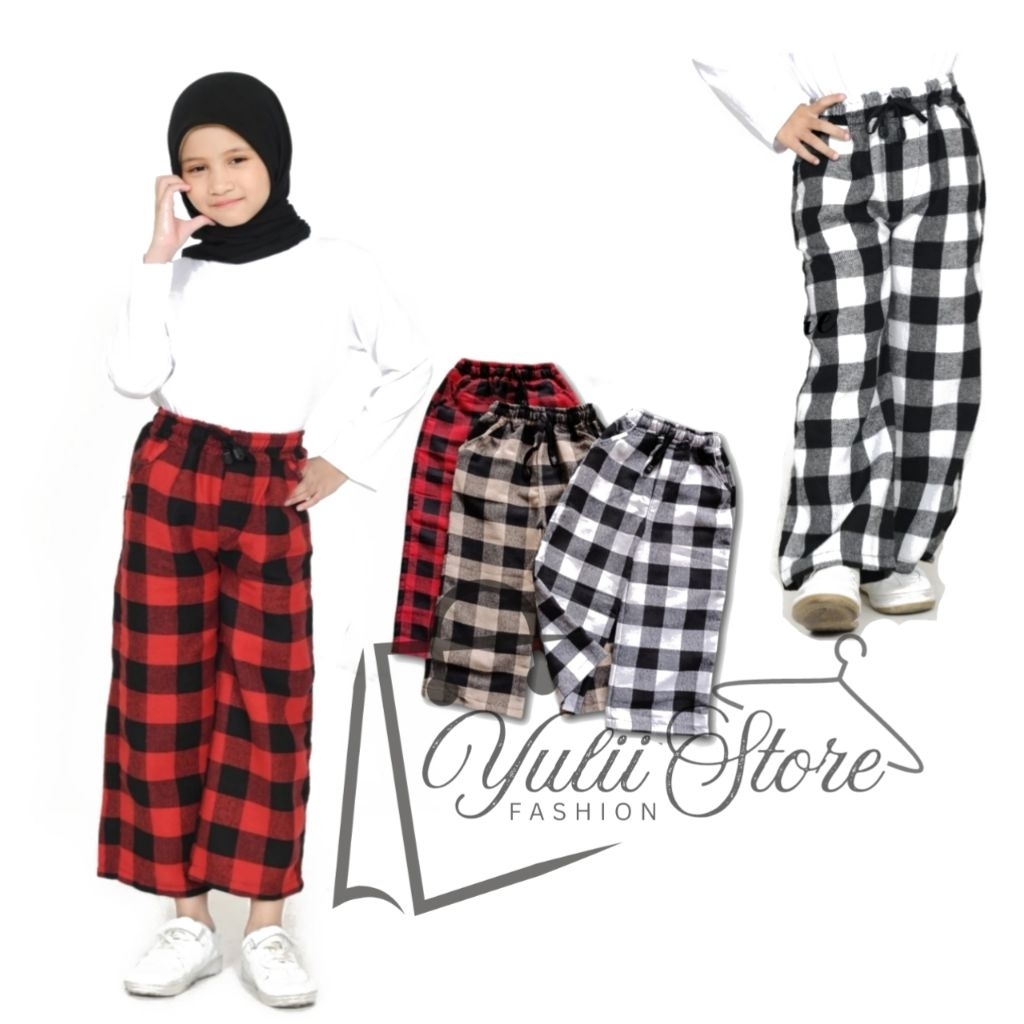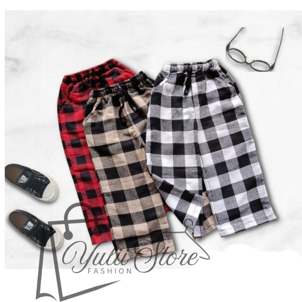 Celana Panjang Kotak-Kotak Anak Usia 1-13 Tahun Bahan Katun