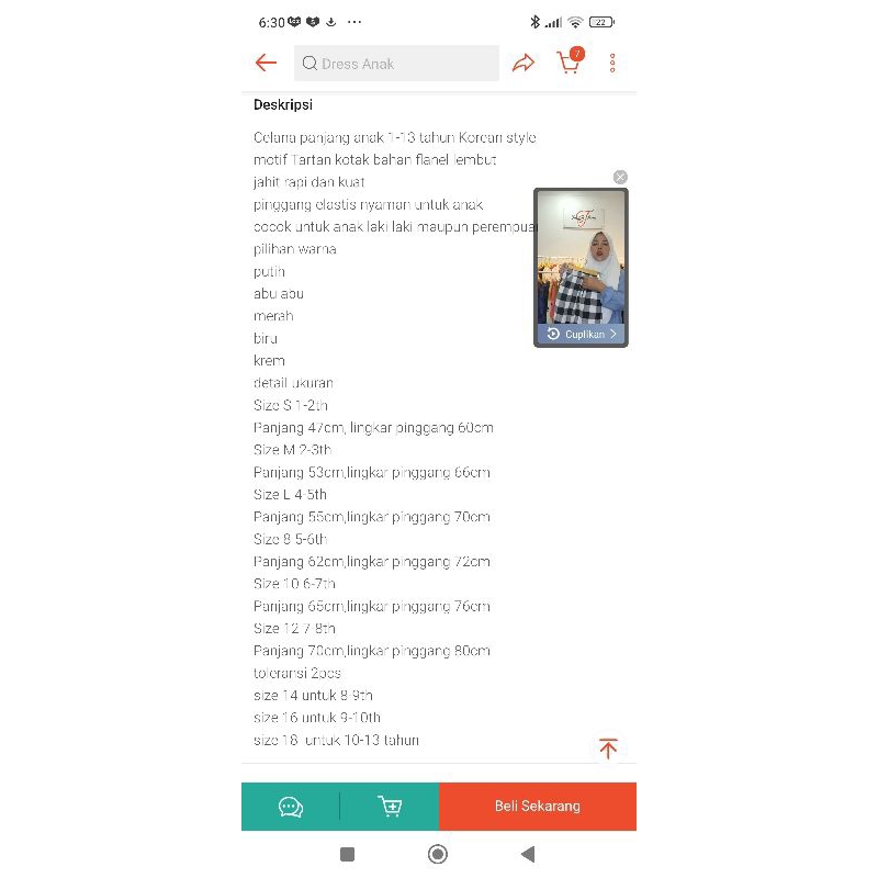 Celana Kotak Kotak Catton Flanel Anak Usia 1-12Tahun