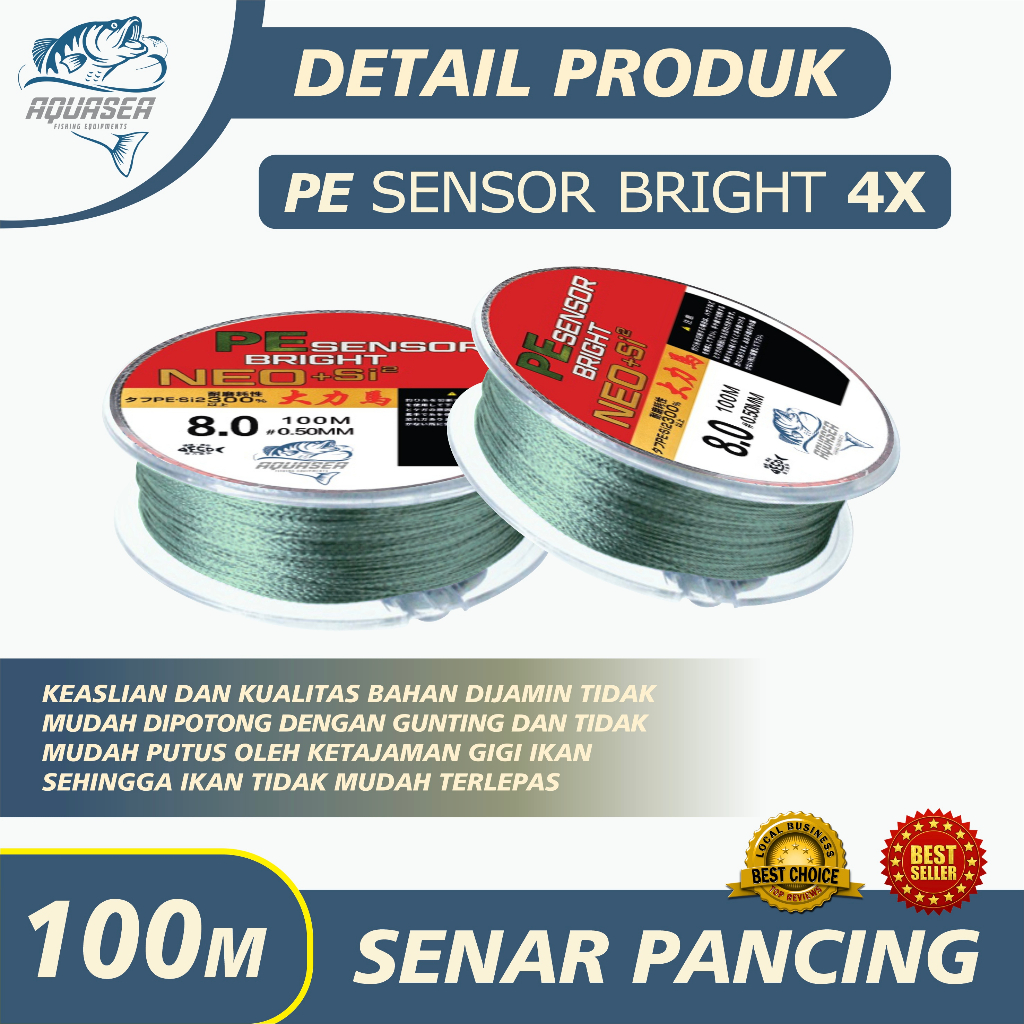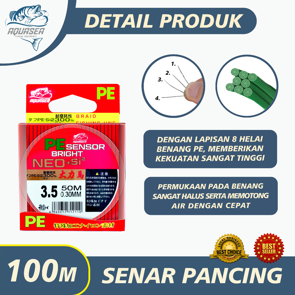 Aquasea - Tali Pancing 100M Senar Pancing Pe Sensor Bright Hijau Sensor Neo+Si2 Jepang Senar Kuat